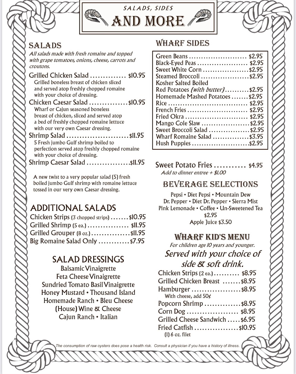 As you step onto the patio, you'll be greeted by picturesque views and the gentle ambiance of the lake. The air is filled with the tantalizing aroma of fried catfish and grilled shrimp, making it impossible to resist diving into the menu. Appetizers like Bang Bang Shrimp and the signature Wharf Crab Cake set the stage for a memorable meal. Fans of classic comfort food will adore the Chicken, Sausage, and Shrimp Gumbo served hot in a cup, or perhaps a bowl of New England Clam Chowder for a warm, comforting touch.